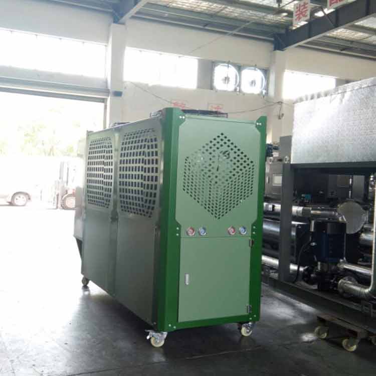 高頻猝火冷水機 高頻加熱機冷水機用于高頻機降溫,及時排除高頻機的熱量,延長了高頻機的使用壽命。高頻機設(shè)備在大功率狀態(tài)下工作時,部分元件、器件、部件需要冷卻降溫。例如功率元器件中的主整流器、IGBT 或MOSFET、高頻變壓器及感應(yīng)圈等,這些元器件、部件由于電流的熱效應(yīng),在大電流條件下工作,必然會產(chǎn)生一定的熱量,造成附帶溫升。如果不及時進行冷卻降溫,不但會影響機器的性能、效率和功率,還會燒壞元器件,造成高頻機設(shè)備損壞。